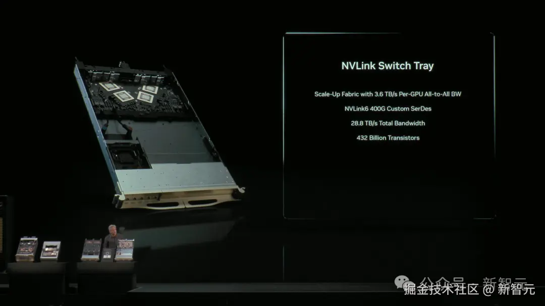 还有 NVLink 交换机,可以让所有 GPU 同步传输数据;以太网交换机 Spectrum-X 可以确保处理器同时通信而不拥堵。