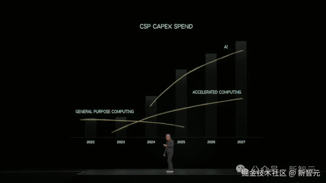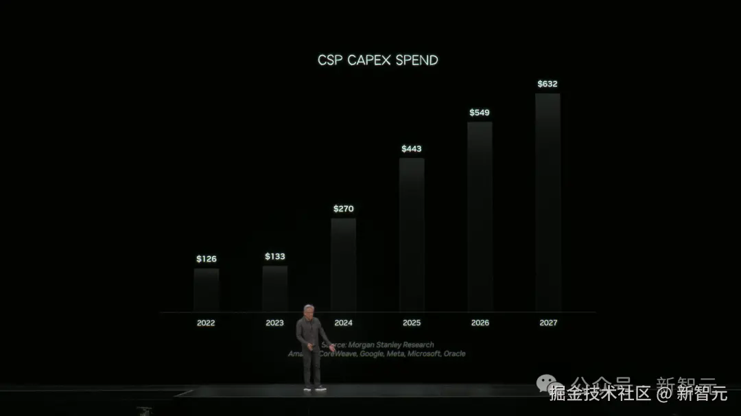 老黄展示了,全球六大云巨头的资本支出曲线(CapEx),正以史无前例的速度飙升。