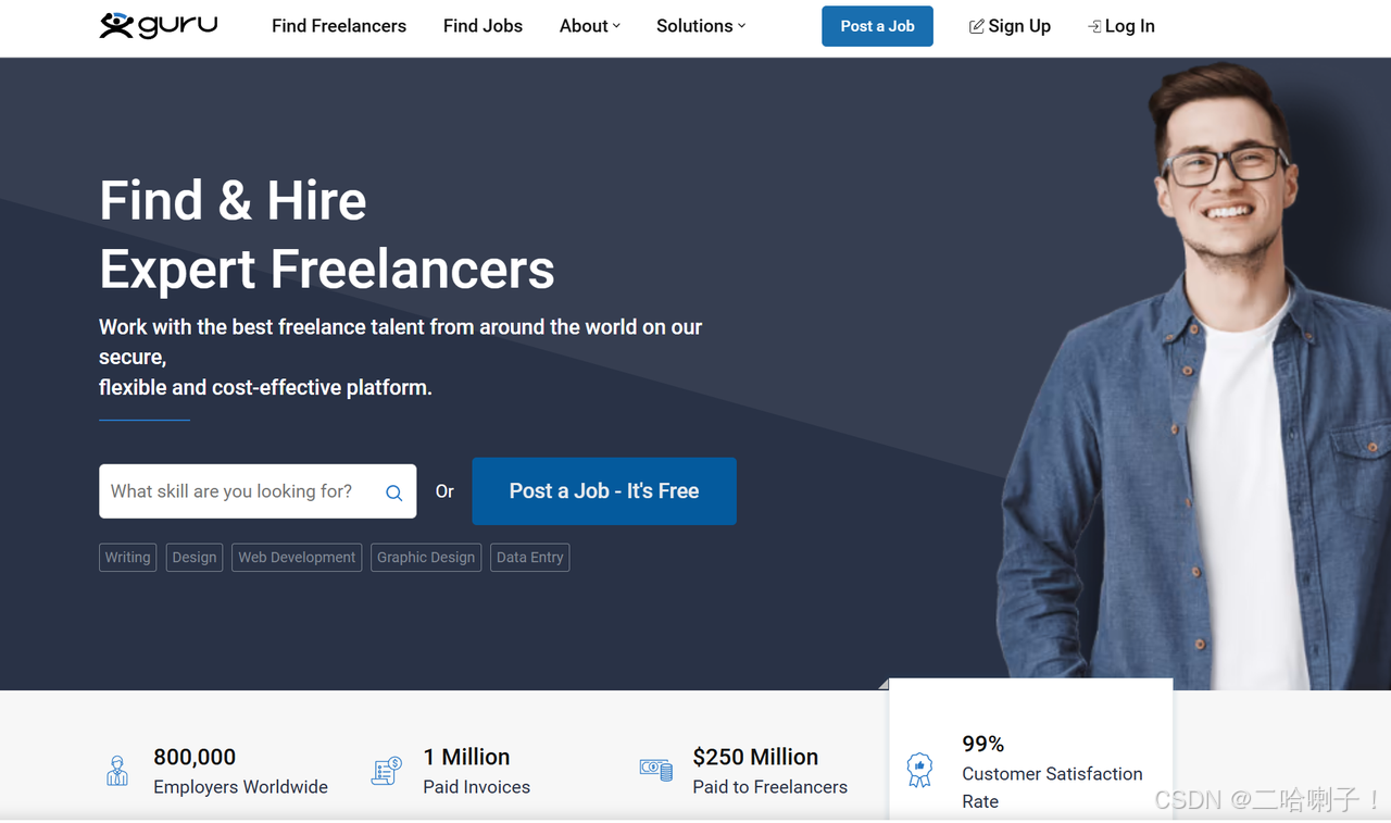 Guru 是一个相对低调但存在时间很久的软件外包平台。它的特点是注重长期合作,平台鼓励自由职业者和客户建立长期项目关系,而不仅仅是一锤子买卖。