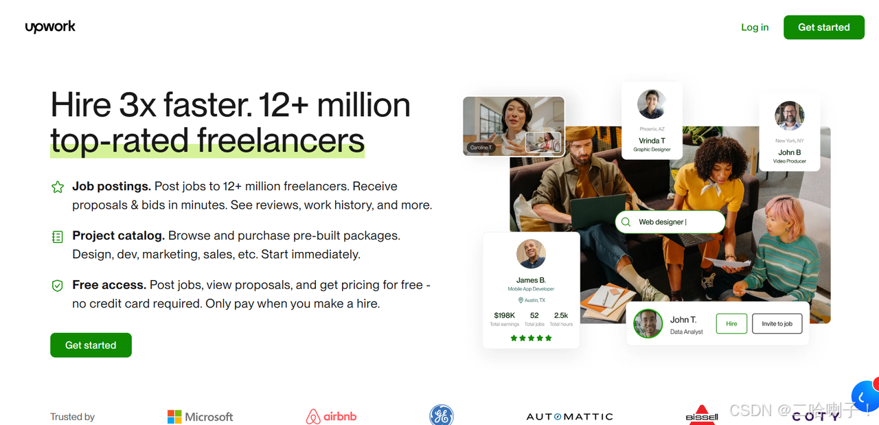 如果你英语不错,能清晰地用英文描述方案和进度,Upwork值得尝试。它的优势是客户体量大,涵盖的项目领域也很广,从前端、后端到 AI、区块链应有尽有。
