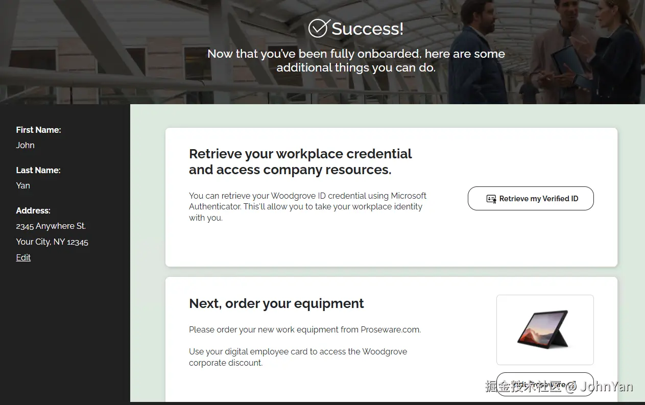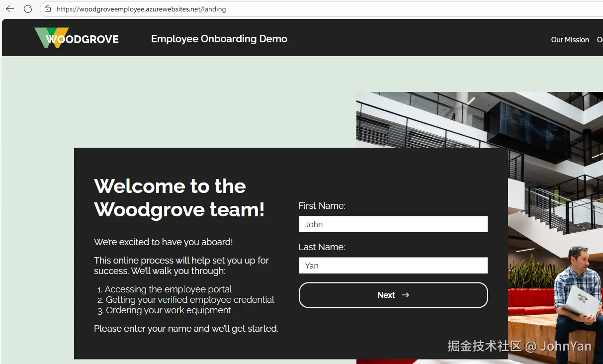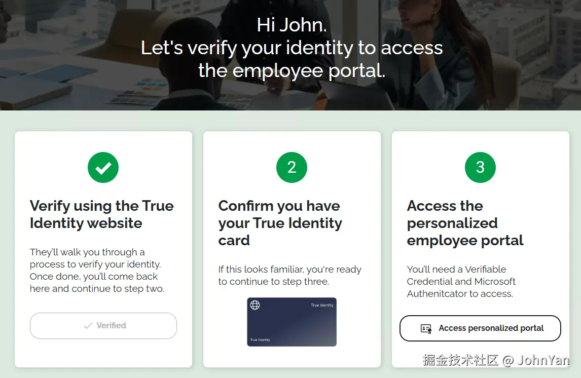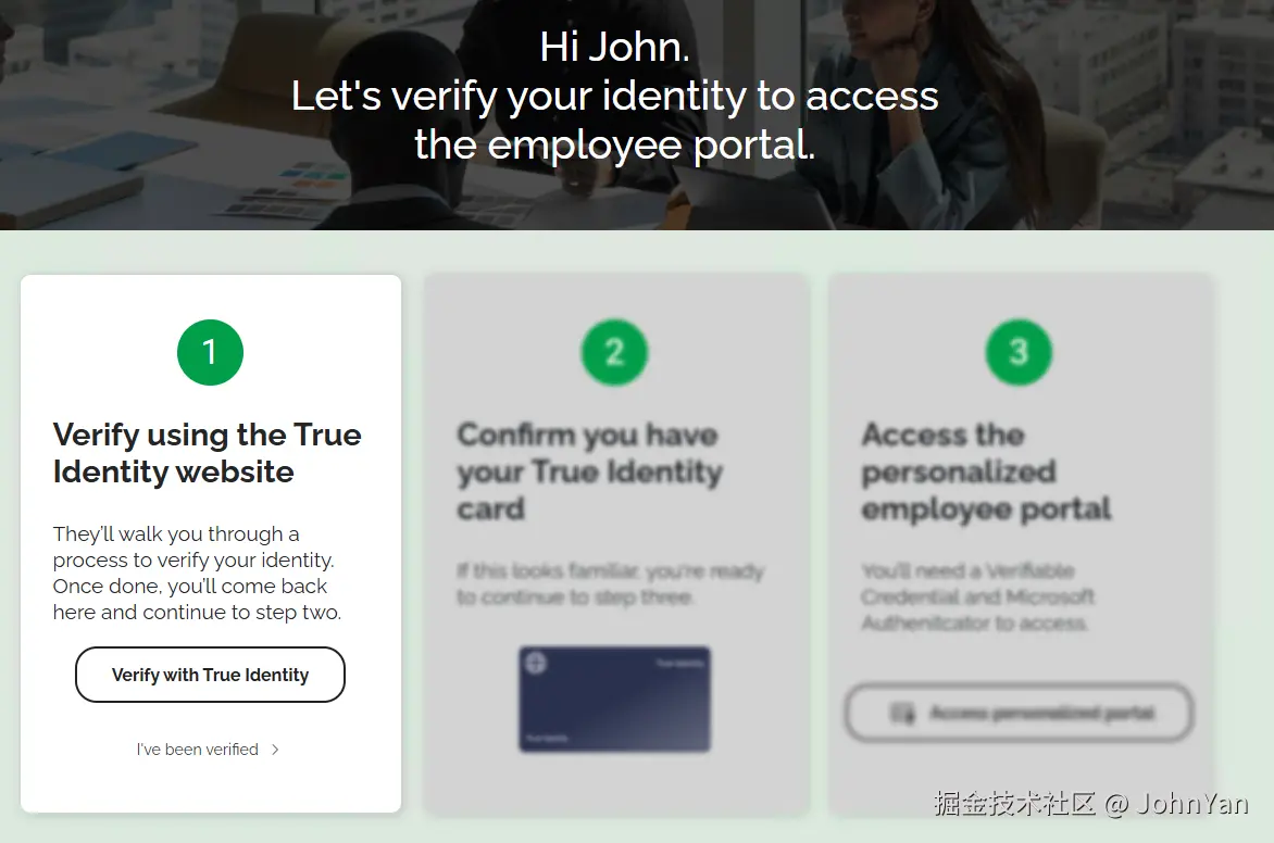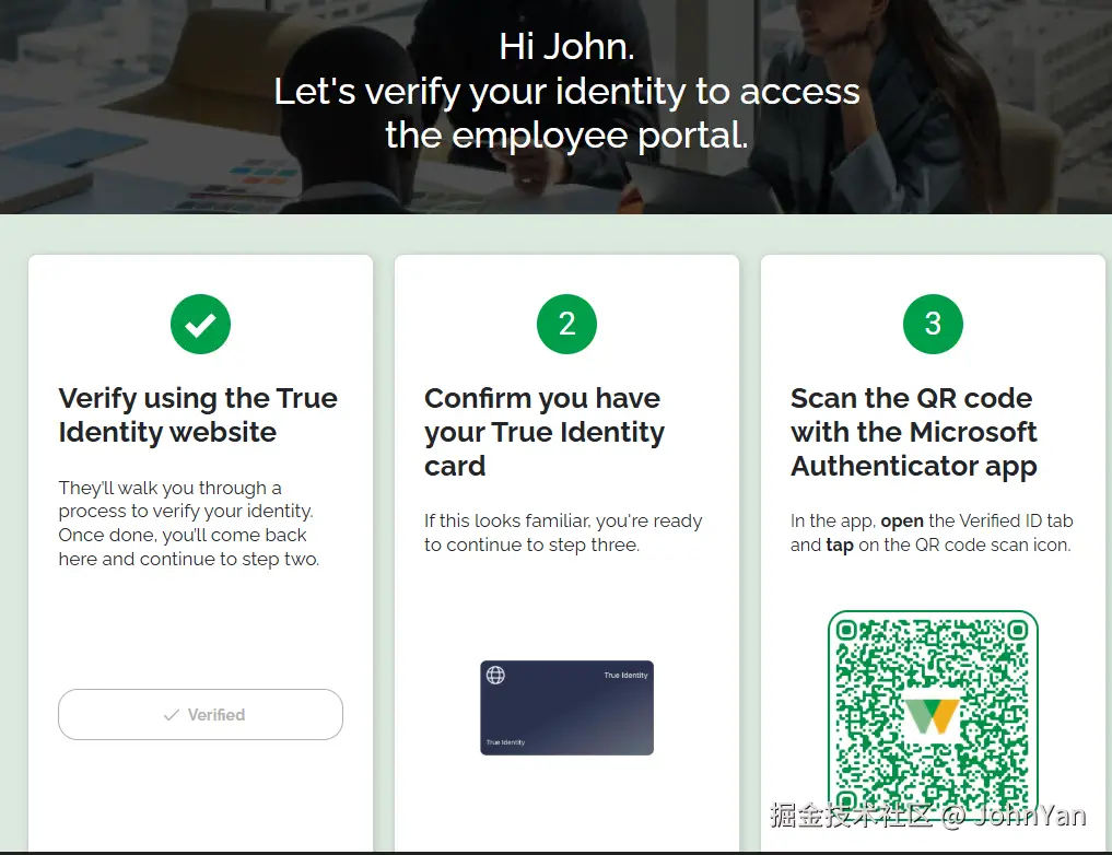 为了便于说明和理解,文中还提供了一个模拟实际应用场景的示例方案、流程和示例应用站点。这正好给了笔者一个契机,先从用户的角度,来体验一下在实际应用场景中的用户操作和体验,特别是微软验证器验证ID相关的功能。