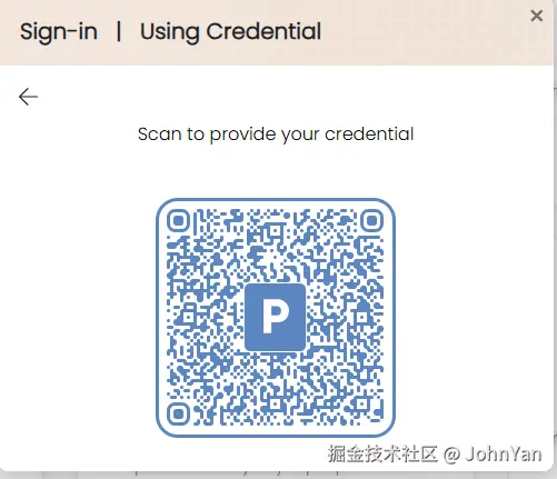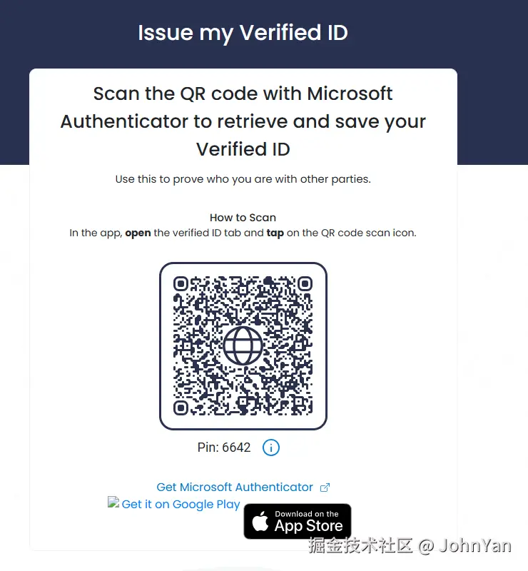 然后,就可以进入本文的核心环节,创建验证ID。这是Demo站点会展示一个二维码,用户可以使用手机上的微软验证器程序来扫码创建验证ID(这个步骤称为颁发验证ID):