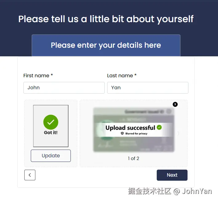 然后是一个模拟实人验证的流程,包括可能上传照片和证件等等: