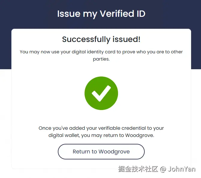 确认并继续之后,在演示站点中,会显示认证成功的信息:
