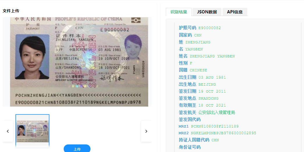 - 逻辑校验:系统会依据机读区的校验位算法,自动核验识别出的号码(如护照号、出生日期等)是否正确,有效降低误识率。