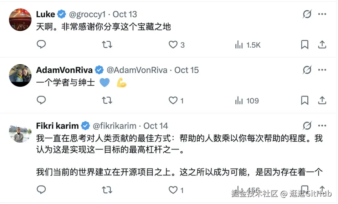 在 GitHub 上的 followers 有 1.5W,是世界顶级的开源大神,挂在他 GitHub 主页的开源项目少说也有 20K 的 Star。他最近开源了 nanochat 后,在国外社交媒体上收大量好评。这是真·大佬。