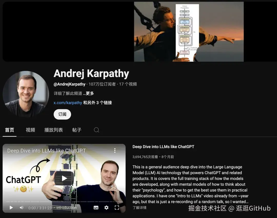 现在他成立了 AI 教育公司,同时在 YouTube 开了个频道,推荐关注: