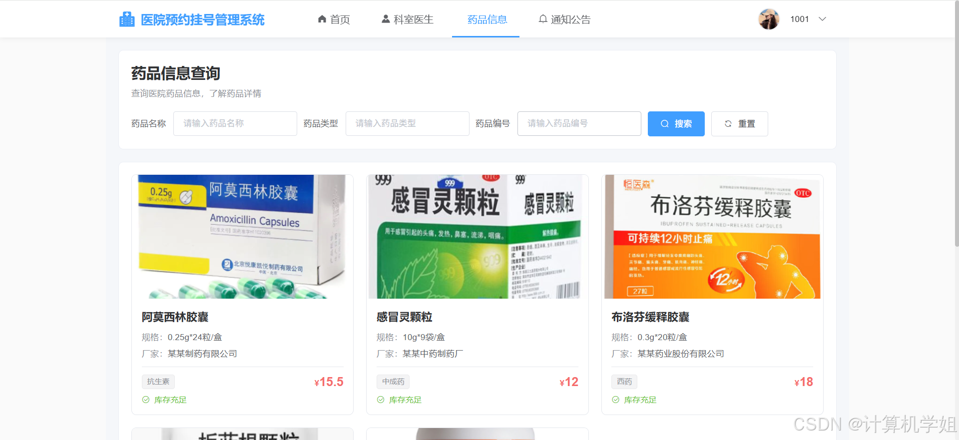 药品信息界面