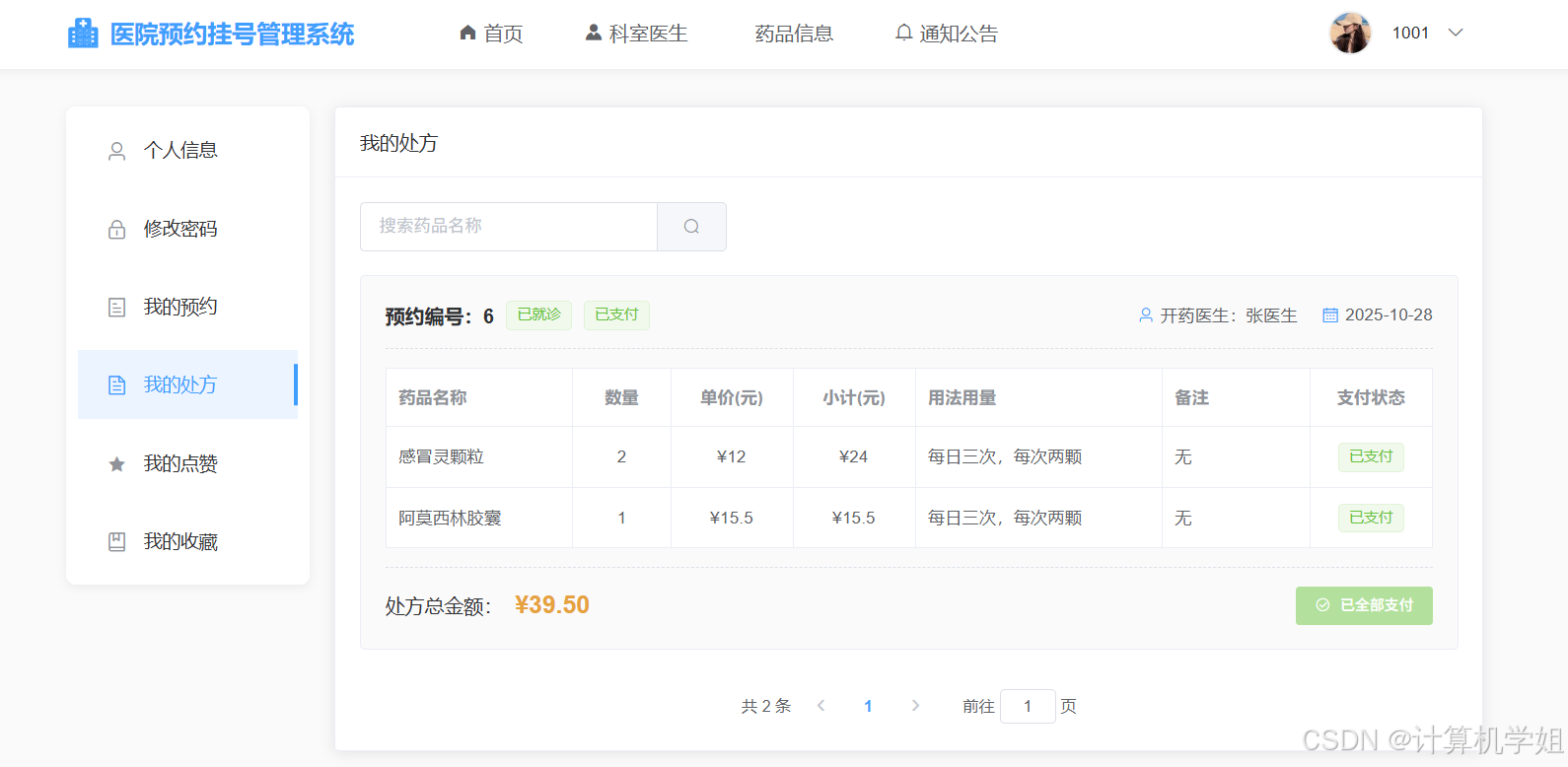 我的处方界面