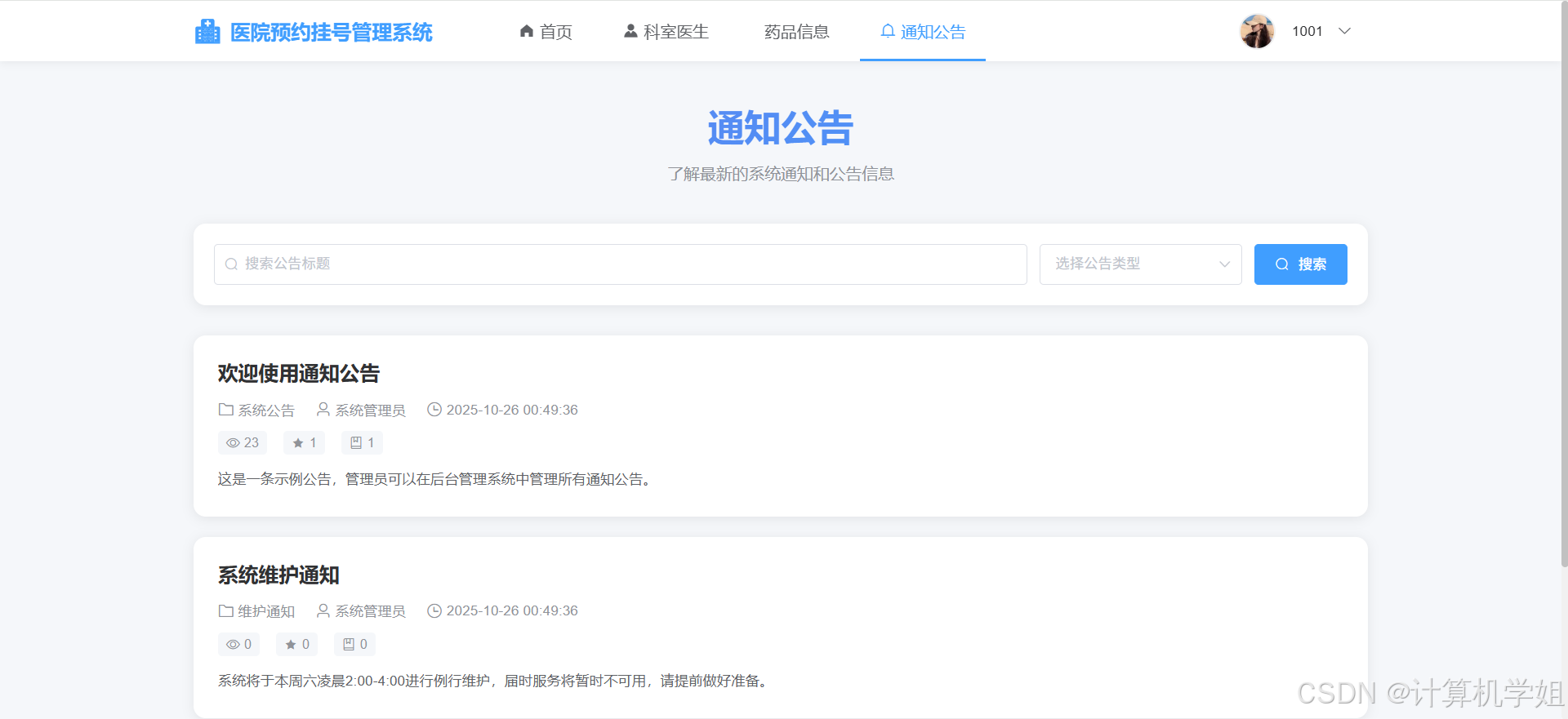 通知公告界面