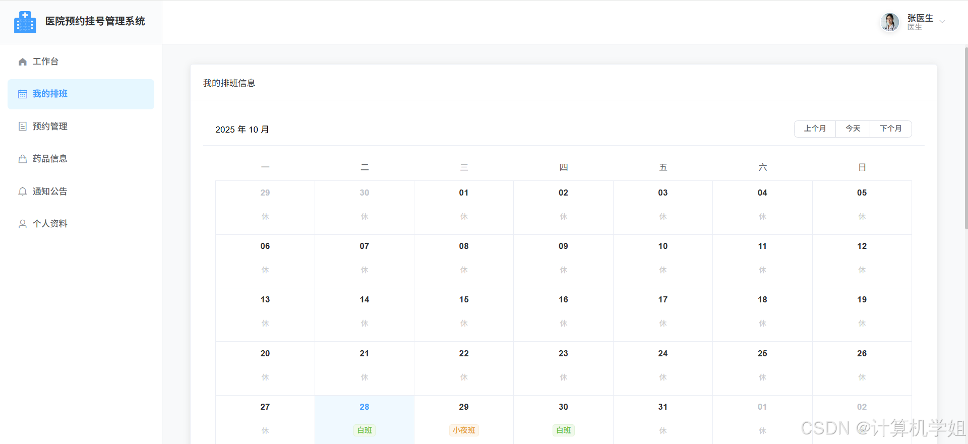 医生界面,我的排班