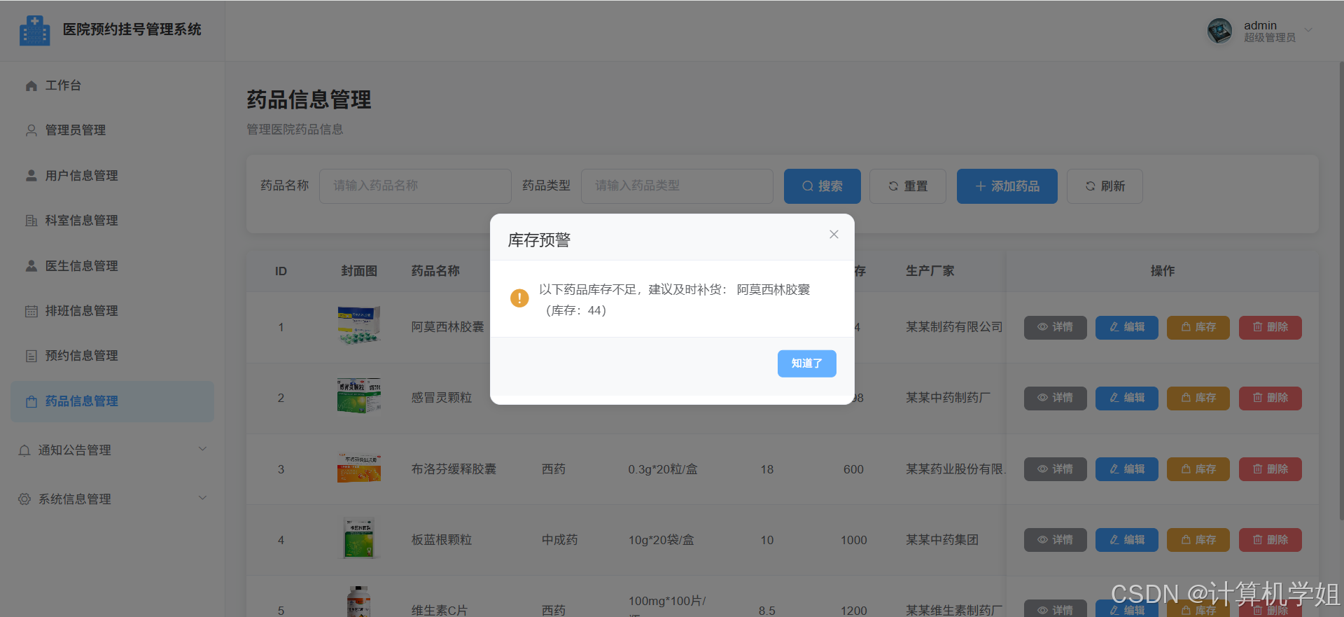 管理员界面,药品信息管理