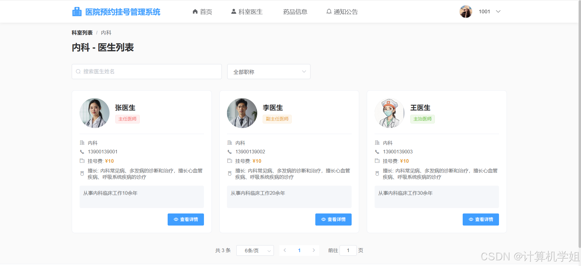 医生列表:某科室下的医生信息列表