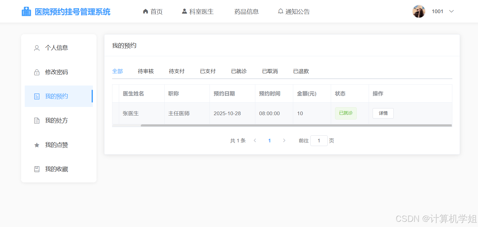 传统医院挂号模式依赖现场排队或电话预约,存在效率低下、信息滞后、资源浪费等问题,尤其在疫情期间,线下聚集进一步加剧了交叉感染风险。随着互联网技术的普及,患者对线上化、便捷化的医疗服务需求日益增长,医院管理方也亟需通过数字化手段优化资源配置、提升服务质量。本研究以SpringBoot+Vue+MySQL技术栈构建医院预约挂号管理系统,具有显著的社会价值与实践意义。从患者角度,系统打破了时空限制,患者可随时随地完成挂号操作,避免了长时间排队等待,同时通过实时更新科室医生排班信息,帮助患者合理规划就诊时间,减少无效等待。从医院管理角度,系统实现了挂号数据的集中化管理与动态分析,管理员可通过后台可视化界面监控挂号流量、调整科室资源分配,有效缓解热门科室的挂号压力,提升整体运营效率。此外,系统支持电子病历与历史挂号记录的长期存储,为医生诊断提供数据支持,促进了医疗服务的连续性与精准性。本研究不仅响应了国家"互联网+医疗健康"的政策号召,推动了医疗行业信息化进程,还通过技术赋能解决了民生痛点,提升了公共服务水平。其成果可为同类医疗机构的数字化转型提供技术参考,助力构建高效、公平、可持续的现代医疗服务体系。