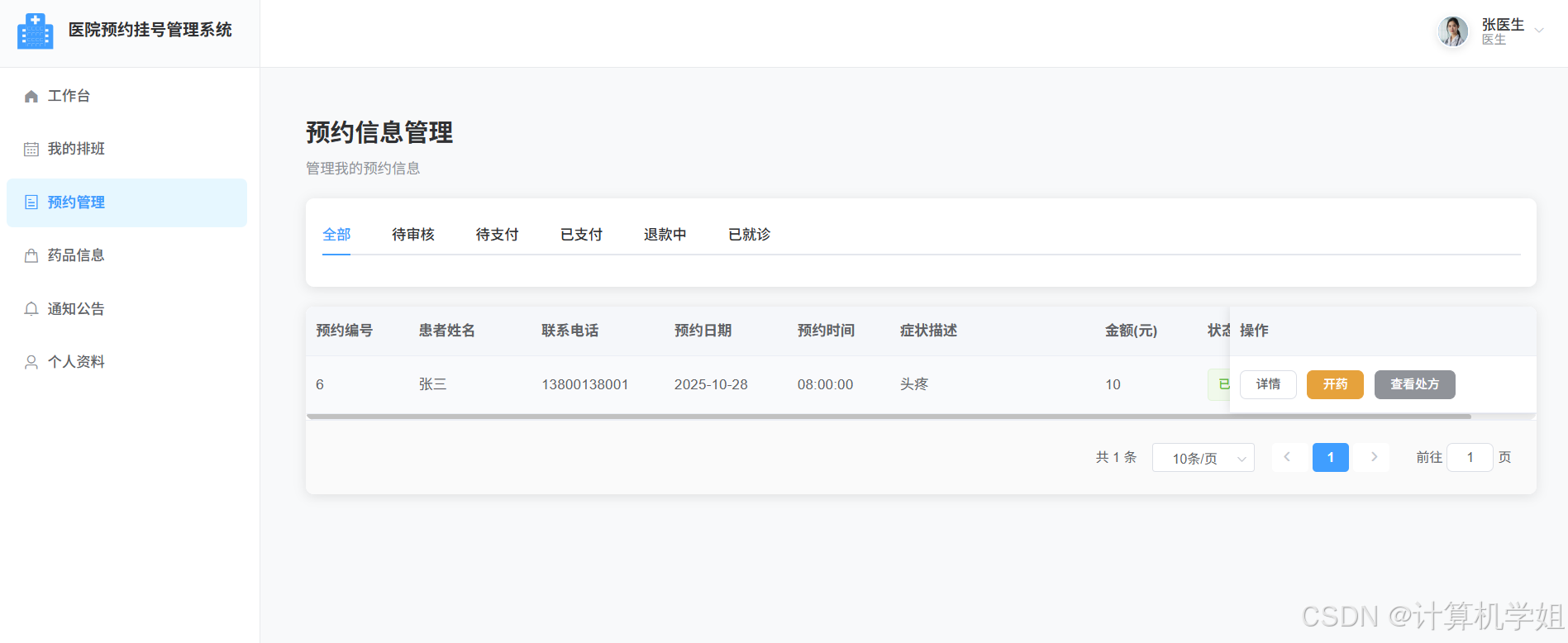 医生界面,预约信息管理