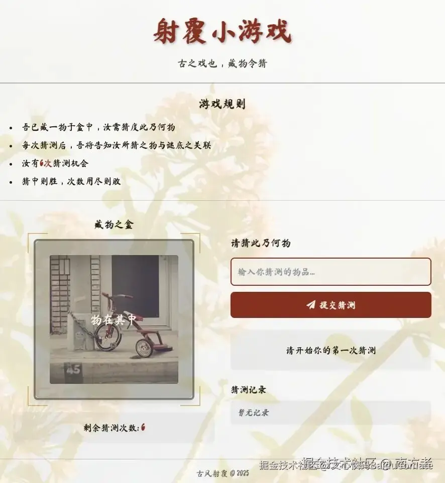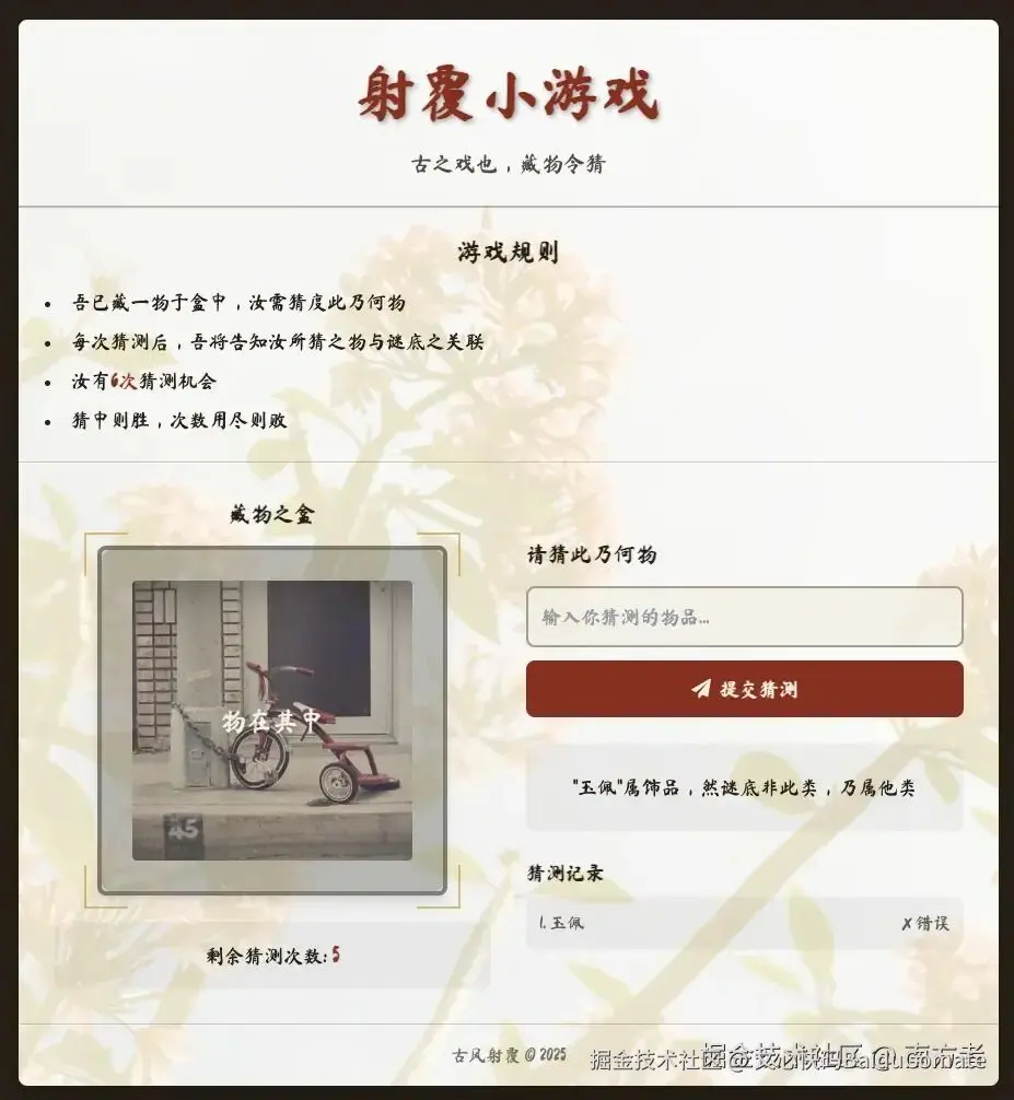 游戏开始了,此时,我猜测的是玉佩!(右下角也能看到猜测记录,但并没有对)