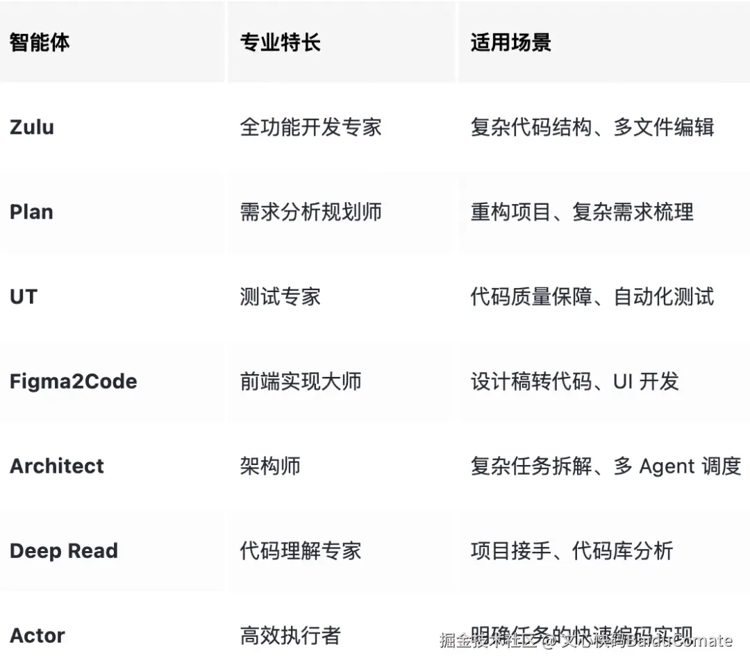 就像一个高效的开发团队,每个 Agent 都有自己的专业领域,通过默契配合完成复杂的开发任务。