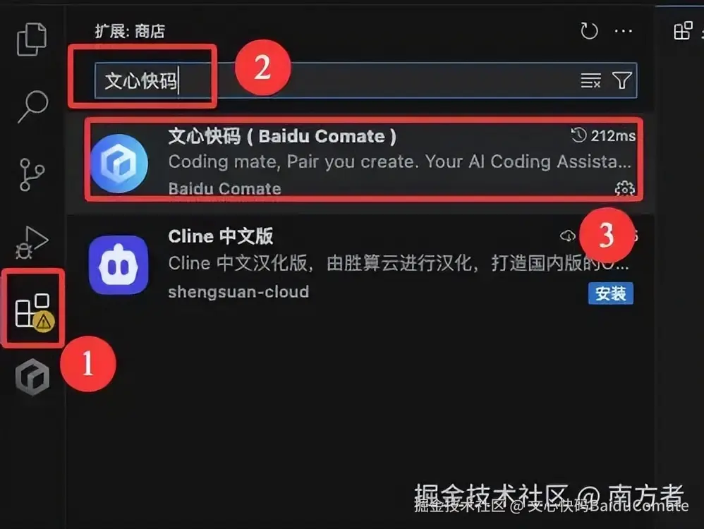 打开,开搞!点击扩展(商店),搜索"文心快码",安装它!