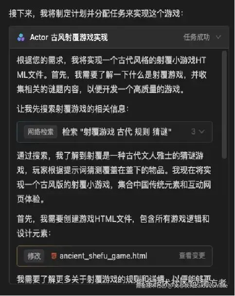- 再委派多个 Actor Agent 并行开发不同游戏