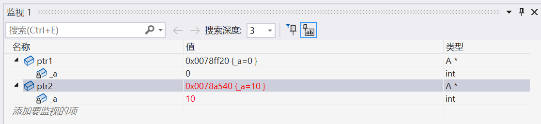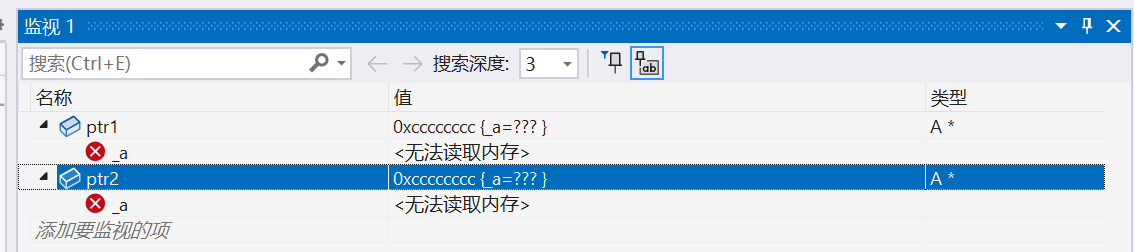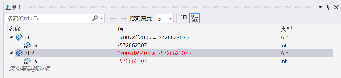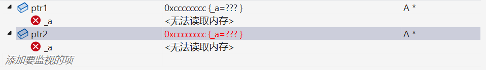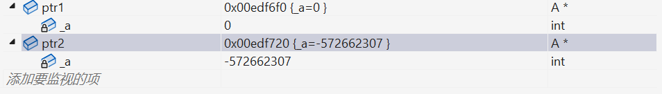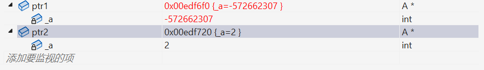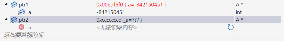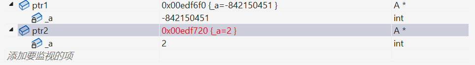 我们看到,ptr1 前面的 4 个字节中并不是 5,和之前的不一样了。这主要是因为编译器默认生成的析构函数对内置类型不做处理,所以不会对开 4 个字节,编译器在这里做了优化。那如果是指针类型指向了资源的话,我们就得自己显示写析构函数了,因为指针也是内置类型,编译器默认生成的析构函数就不符合我们的要求!