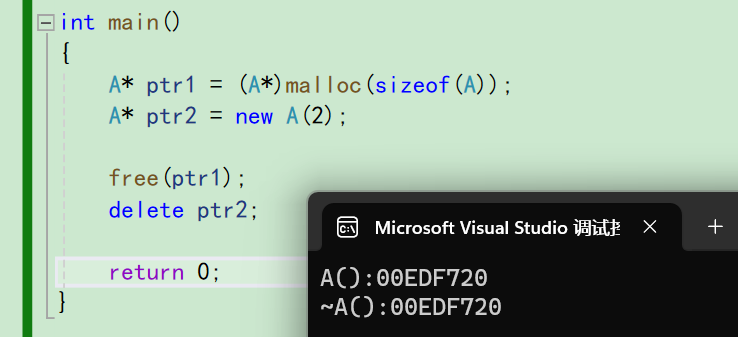 - 申请自定义类型对象时,malloc/free只会开辟空间,不会调用构造函数与析构函数,而new在申请空间后会调用构造函数完成对象的初始化,delete在释放空间前会调用析构函数完成空间中资源的清理释放