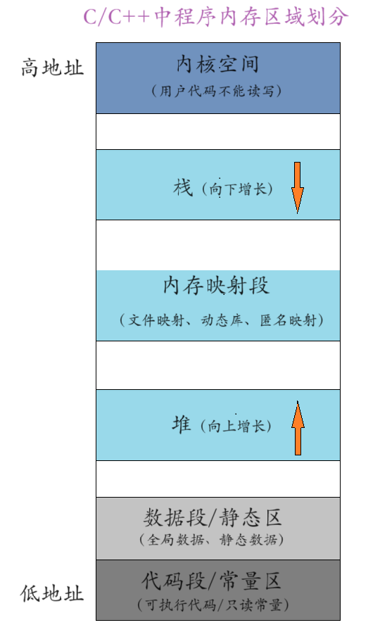 在 C/C++ 中进行内存区域划分主要有以下几个原因: