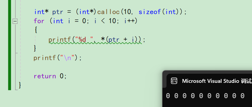 malloc函数相比,calloc函数不仅会开辟内存,还会在返回地址之前把申请的空间的每个字节都初始化为 0。 - 如果空间开辟失败也会返回