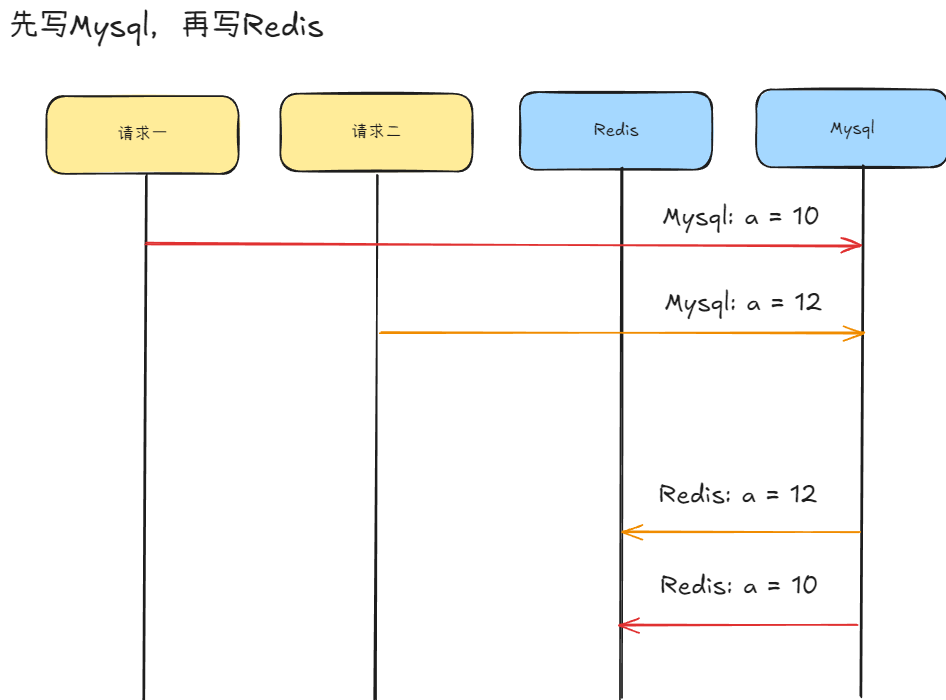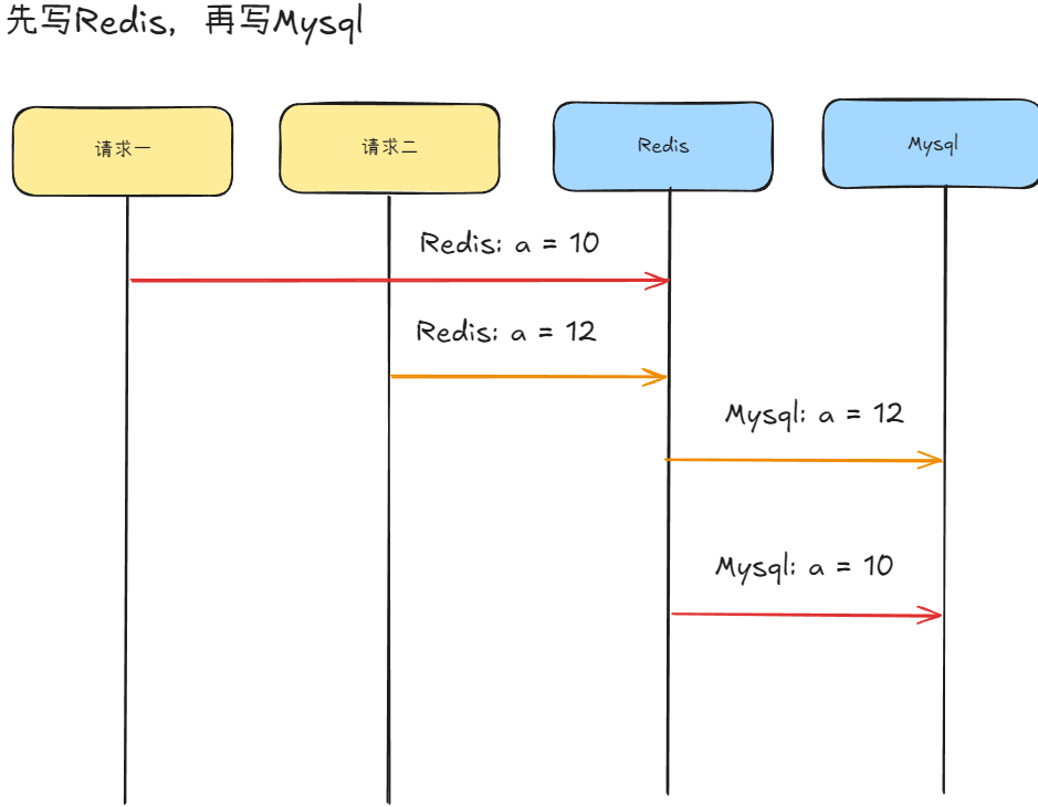 场景:有两个相邻的请求,请求一为将 a 修改为 10 ,请求二为将 a 修改为 12,请求一先于请求二
