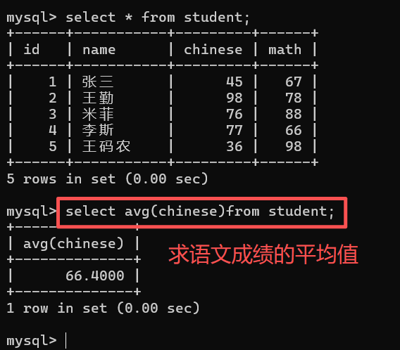 SELECT AVG(age) FROM students; -- 结果是所有学生年龄的平均值(比如18.5)