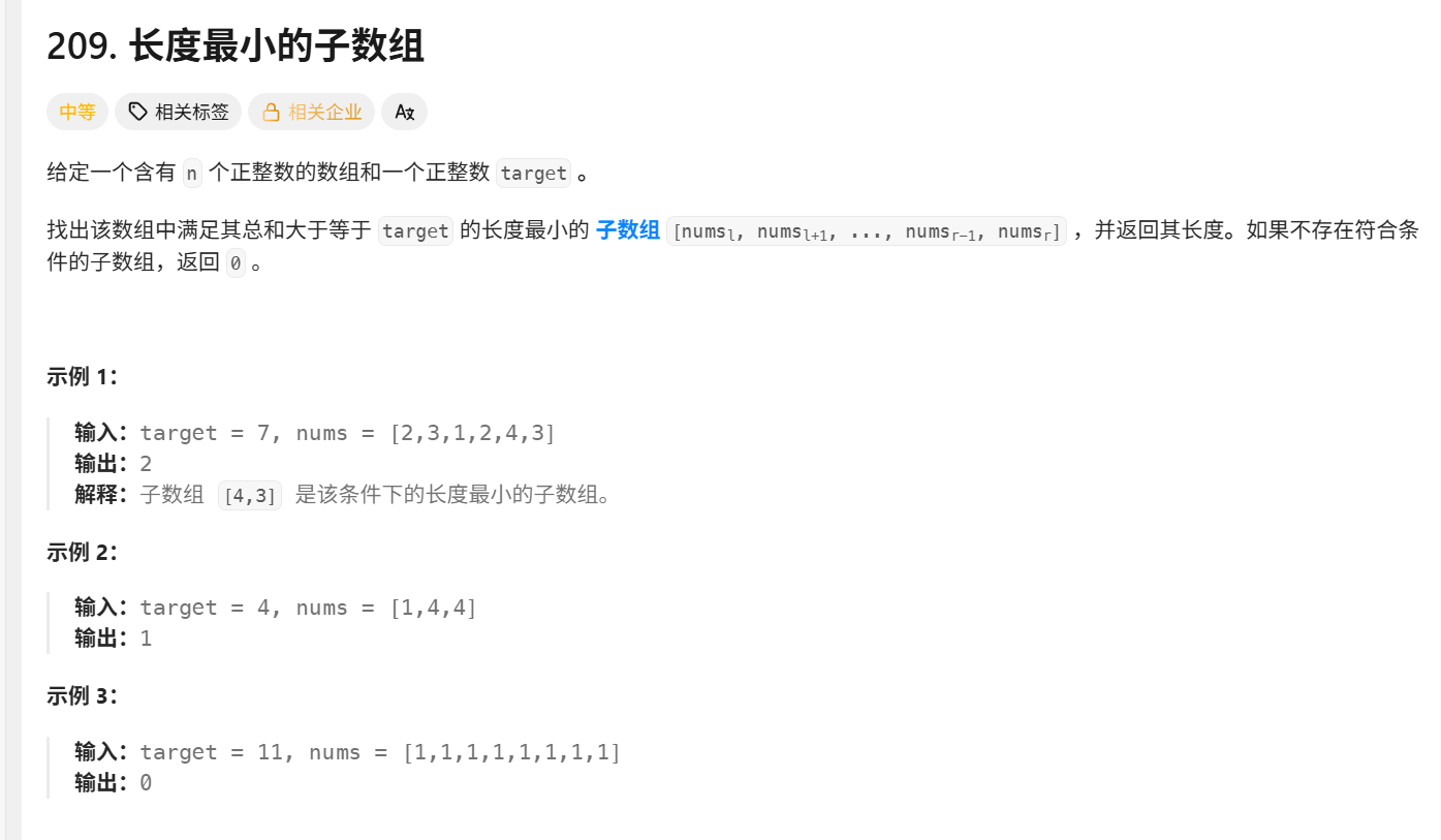 适用场景:寻找满足某种条件的连续子数组或子字符串(如:最小覆盖子串、长度最小的子数组、无重复字符的最长子串。)。