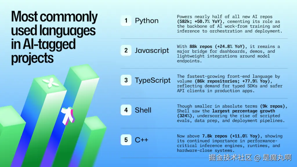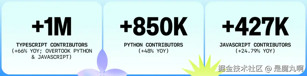 TypeScript 首次成为使用最多的语言,超越 Python 和 JavaScript,标志着现代软件构建方式的代际转变。
