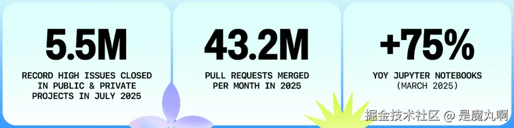在 GitHub 上的每个生产力信号上,开发者在 2025 年都创造了新纪录。