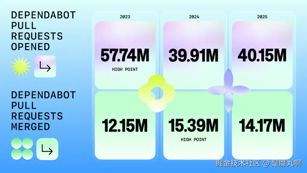 - Pull requests 创建:+20.4%(4750 万 vs 3950 万)
