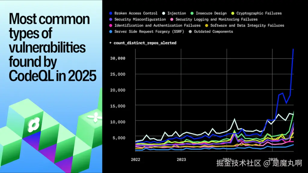 - 访问控制破坏增长最快,2025 年中期在 6000+ 仓库中接受修复。