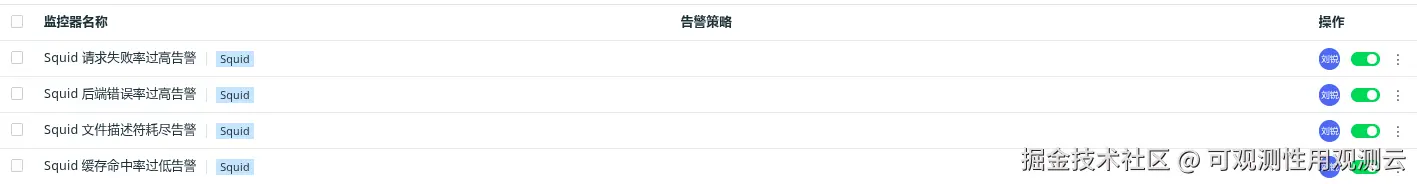 登录观测云控制台,点击「监控」 -「新建监控器」,输入 "Squid", 选择对应的监控器,点击 "确定" 即可添加。
