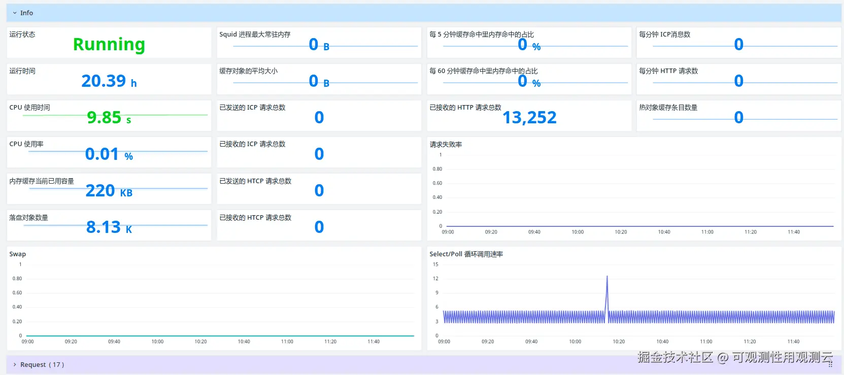 | info_CPU_Time | Squid 进程累计消耗的 CPU 时间 | 秒 |