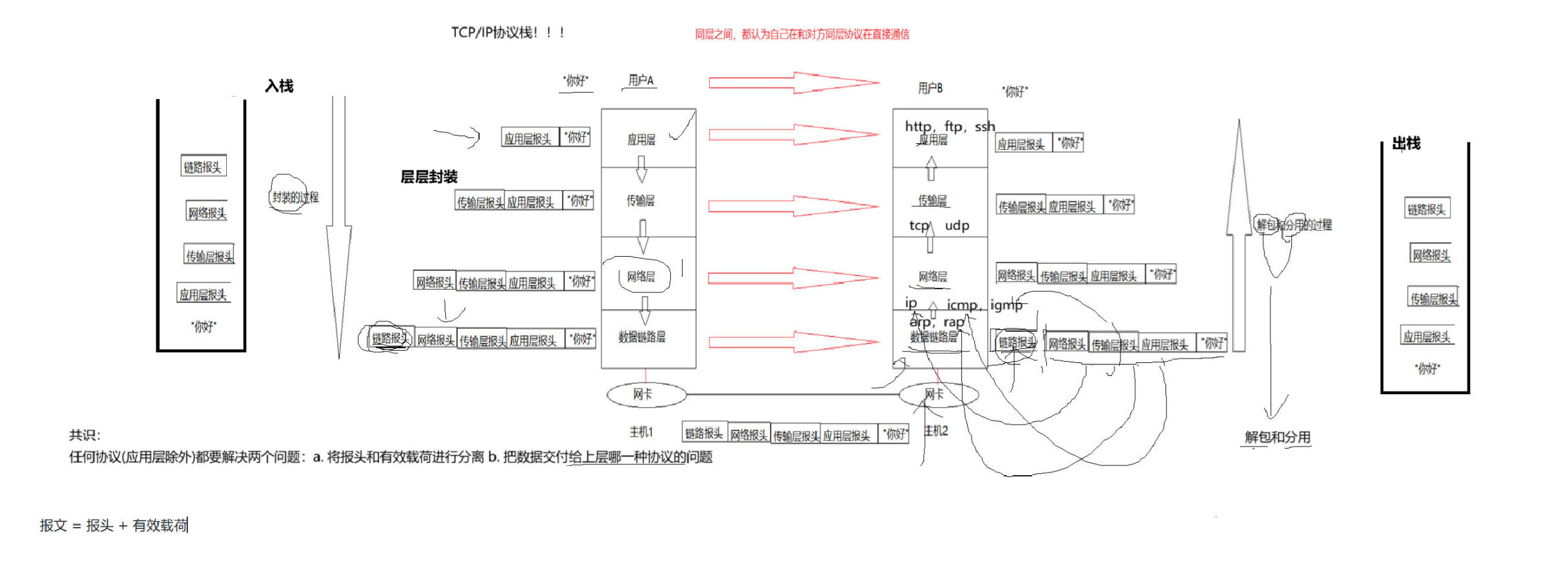 关于协议的朴素理解: 所谓协议, 就是通信双方都认识的结构化的数据类型因为协议栈是分层的, 所以, 每层都有双方都有协议, 同层之间, 互相可以认识对方的协议。