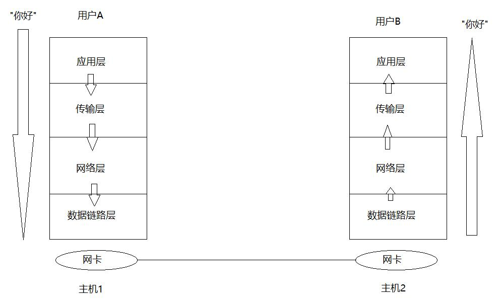如果我们换个视角,从原本的垂直视角过渡为水平视角,那么同层之间,压根不需要考虑下面是如何做的,它们认为自已直接在于对方通信。