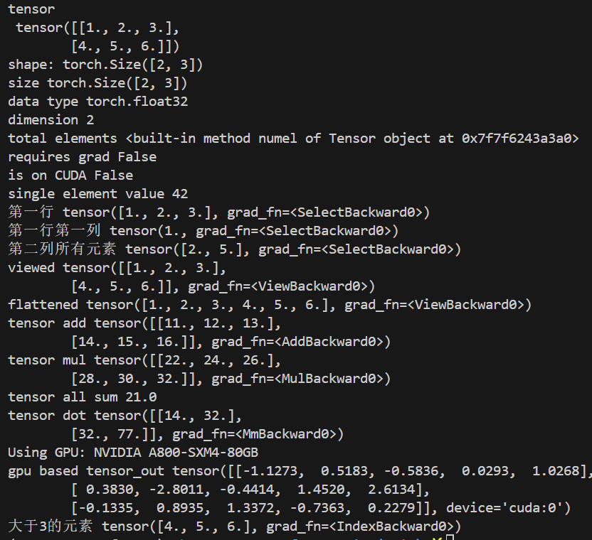print("is on CUDA",tensor.is_cuda)#打印是否存在GPU上