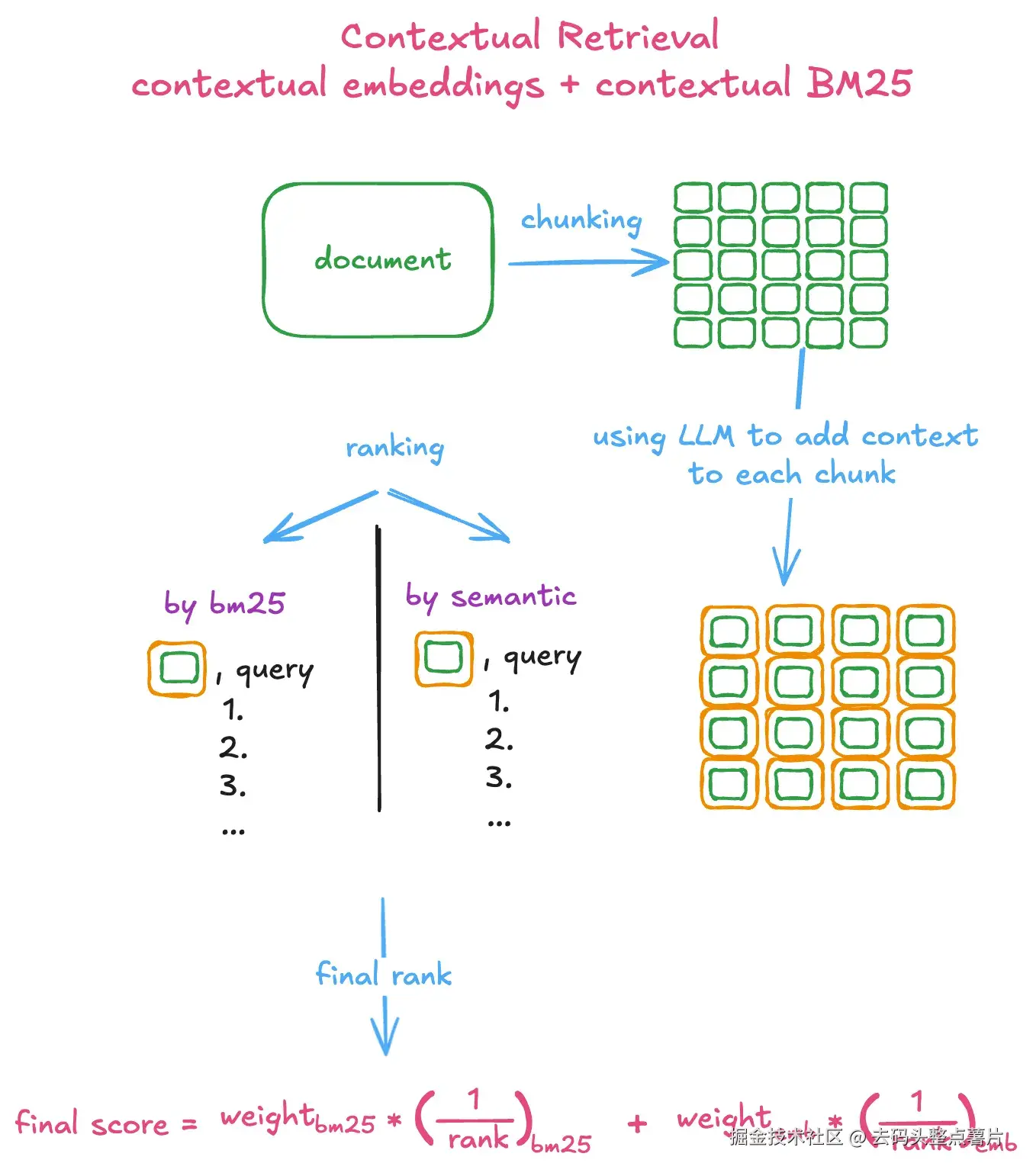 图 1:使用上下文嵌入与上下文 BM25 的混合搜索示意图(Image by author)