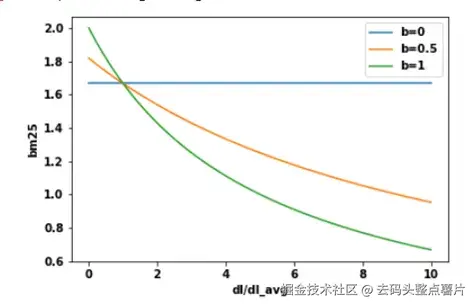 BM25 为此引入参数 b,用于平衡文档长度的影响: