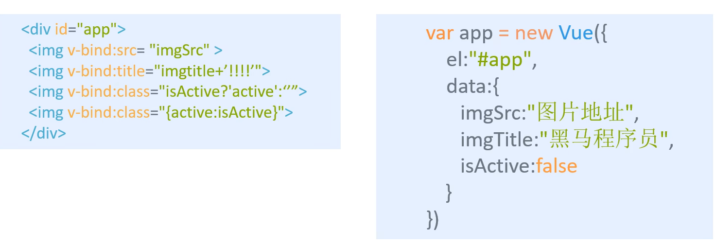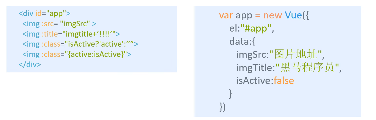 这个指令是给变量名设置属性的,例如src,title,class这样的。