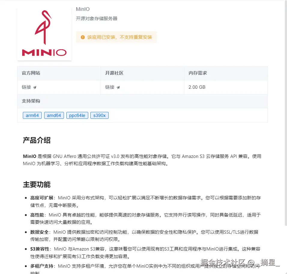 - MinIO 是一个兼容 S3 协议的开源对象存储 :