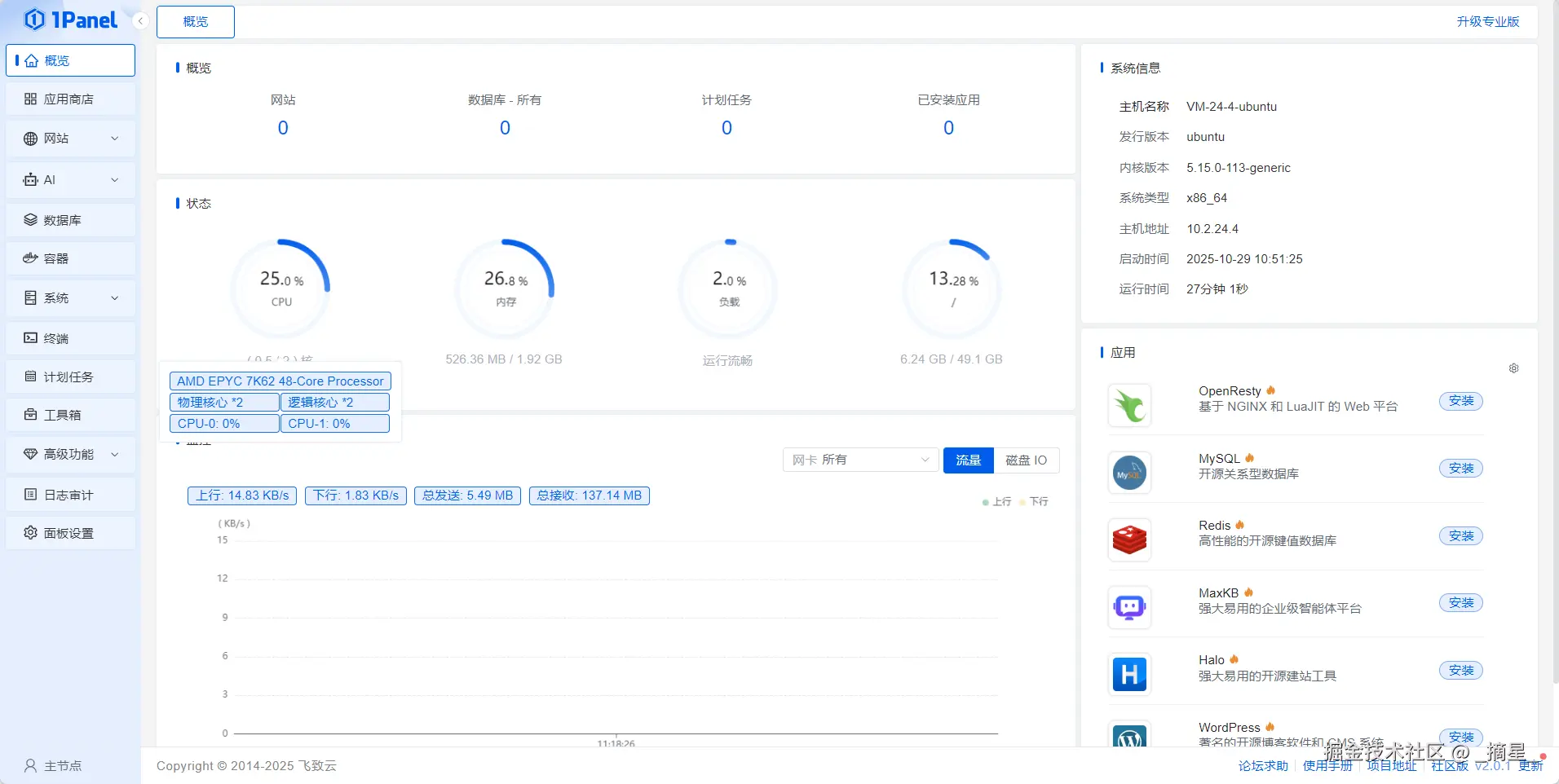 它将复杂的服务器运维工作,转化为简单的点击操作,是现代开发者和运维人员提升效率、降低门槛的理想工具。无论是搭建个人博客、部署企业官网,还是管理数据库和容器,1Panel 都能让你事半功倍