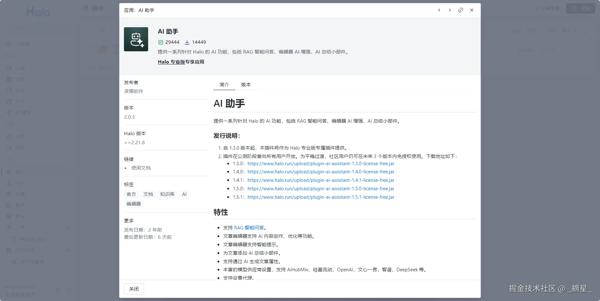 - Halo 插件:如 AI 自动生成摘要、标签推荐、评论审核(防垃圾)。