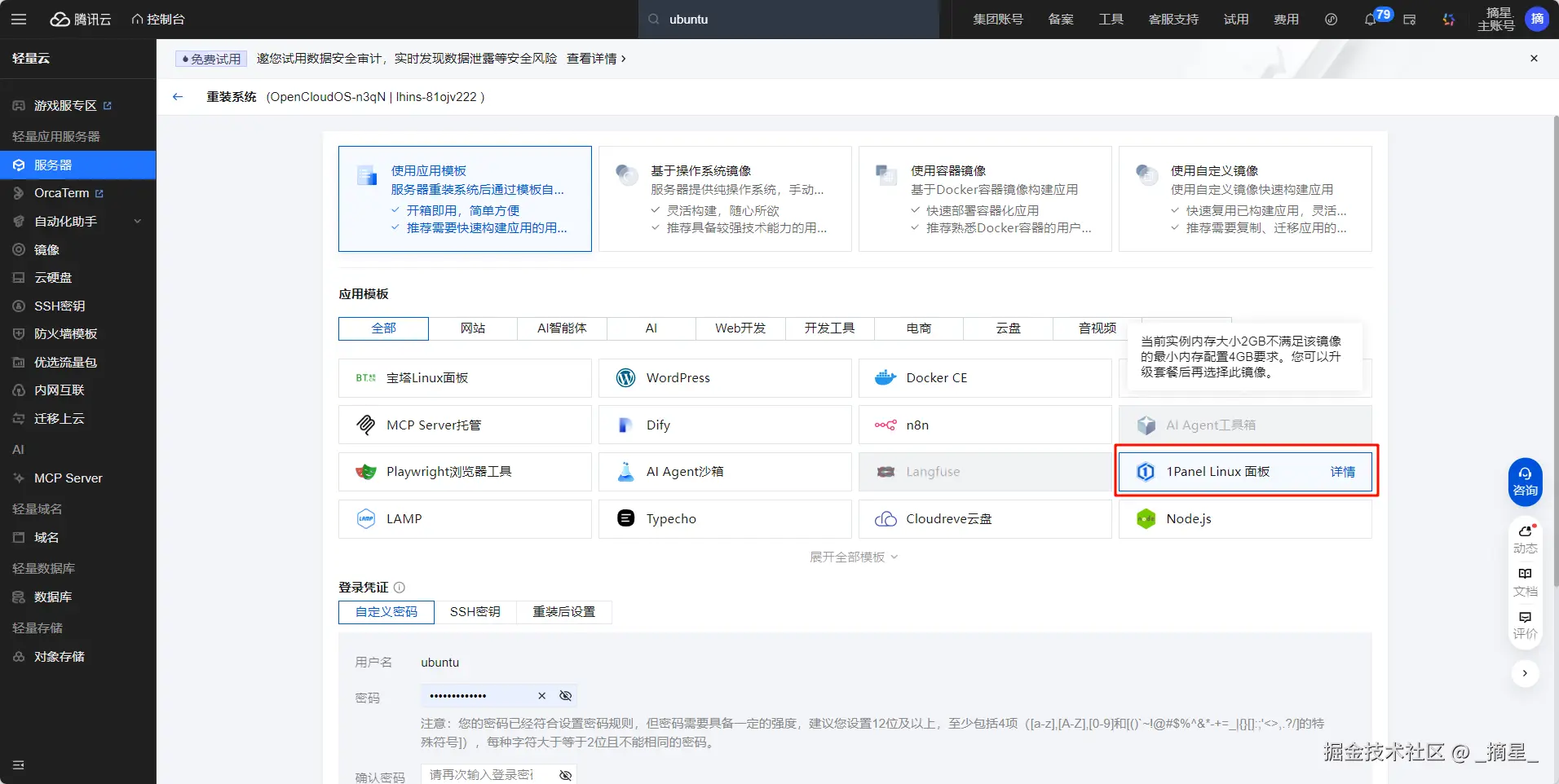 于是,我选择了 腾讯云 Lighthouse + 1Panel + Halo 这套组合:用轻量服务器控制成本,用 1Panel 图形化面板降低运维门槛,用 Halo 专注内容创作。这套方案不仅让我在 2GB 内存的机器上跑起了完整的博客系统,还为后续集成 PostgreSQL、MinIO、Prometheus 甚至 AI 插件预留了扩展空间。