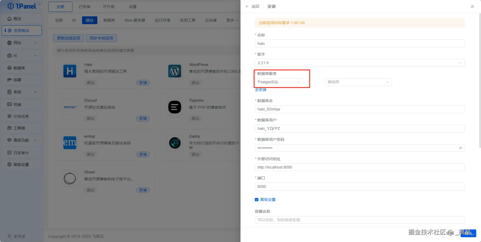 在1Panel的容器中,可以重复创建应用以搭建集群,因此,我们可以搭建多个Halo作为不同的博客需求。