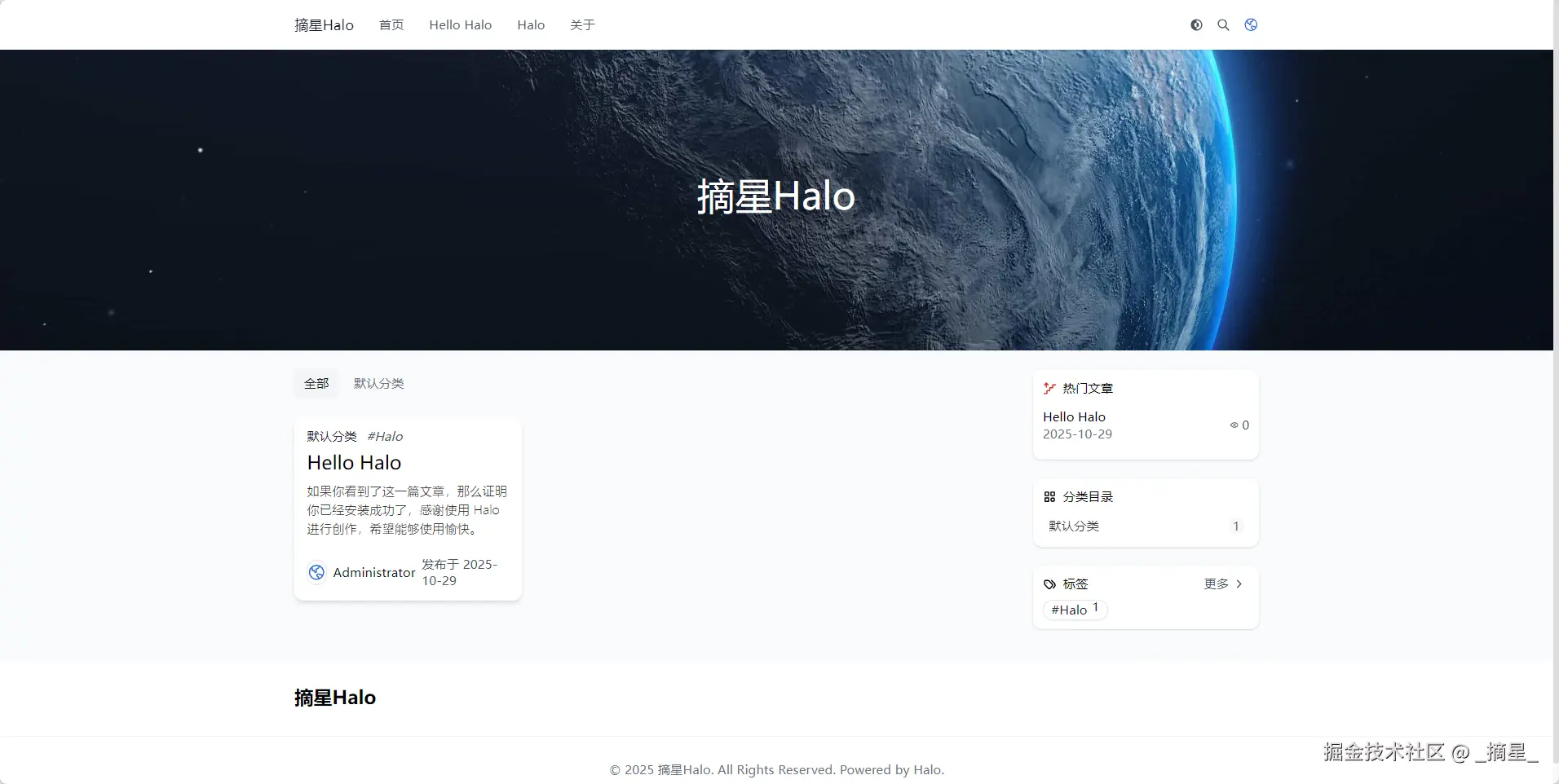 Halo 是一款强大、易用、现代化 的开源建站工具(博客系统),由国内开发者主导,采用 Java 语言开发,后端基于 Spring Boot 框架,数据库支持 MySQL、PostgreSQL、H2 等。它致力于为个人和小型团队提供一个简洁、高效、可扩展的内容发布平台。