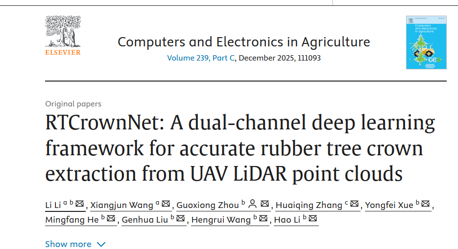 RTCrownNet: A dual-channel deep learning framework for accurate rubber tree crown extraction from UAV LiDAR point clouds