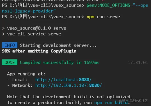 上面命令和使用 vue create vuex_source 创建项目是等价的,我电脑安装了 vue-cli2 和 vue-cli3,在 vue-cli3里面修改了 cmd 文件,所以可以用上面命令。